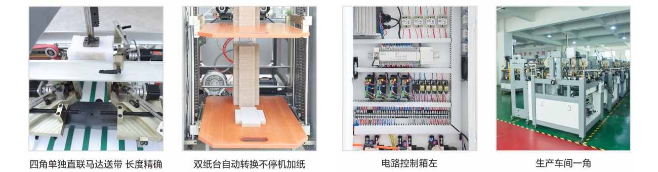 1.飛達(dá)送板:更適合對(duì)厚板,薄板、變形板,特大板,開(kāi)槽板的四角貼角。有紙盒下拉與自動(dòng)定位機(jī)速度自動(dòng)匹配功能,